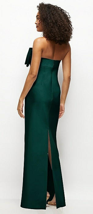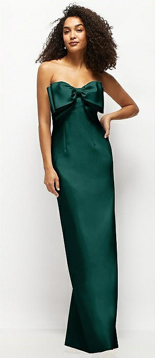 Strapless Satin Column Maxi Dress with Oversized Handcrafted Bow in evergreen