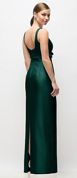 Bateau Neck Satin Column Maxi Dress with Exaggerated Tail Bow Straps in evergreen