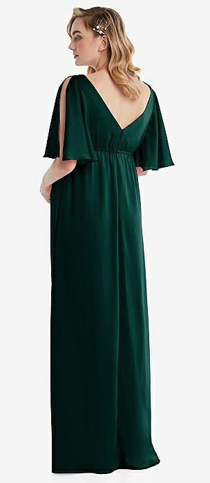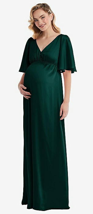Flutter Bell Sleeve Empire Maternity Dress in evergreen