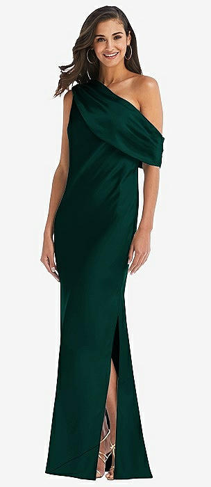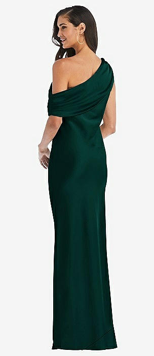 Draped One-Shoulder Convertible Maxi Slip Dress in evergreen