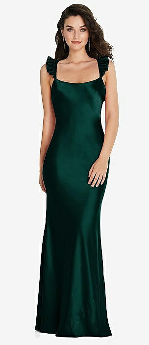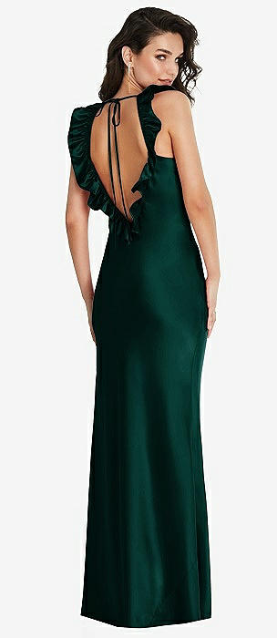 Ruffle Trimmed Open-Back Maxi Slip Dress in evergreen