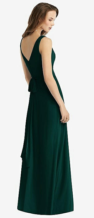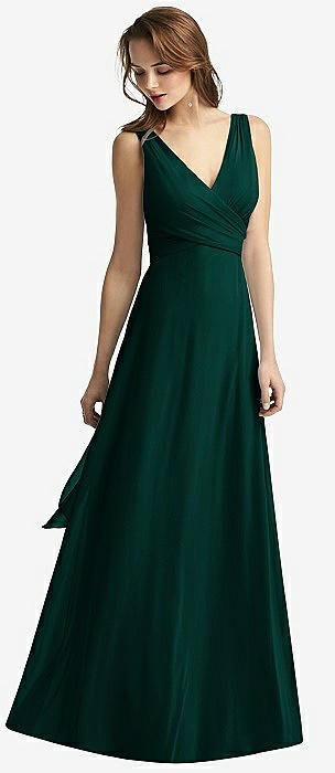 Sleeveless V-Neck Chiffon Wrap Dress in evergreen