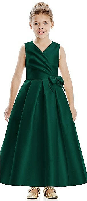 Faux Wrap Pleated Skirt Satin Twill Flower Girl Dress with Bow