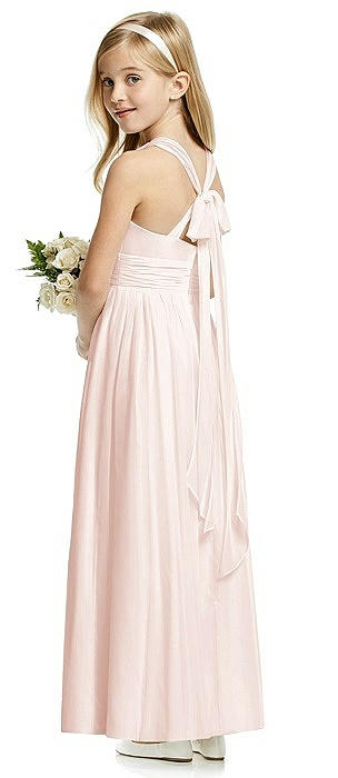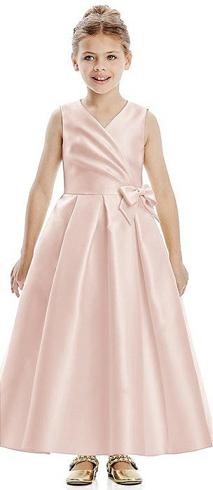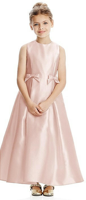 Princess Line Satin Twill Flower Girl Dress with Bows in blush
