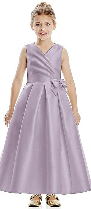 Faux Wrap Pleated Skirt Satin Twill Flower Girl Dress with Bow