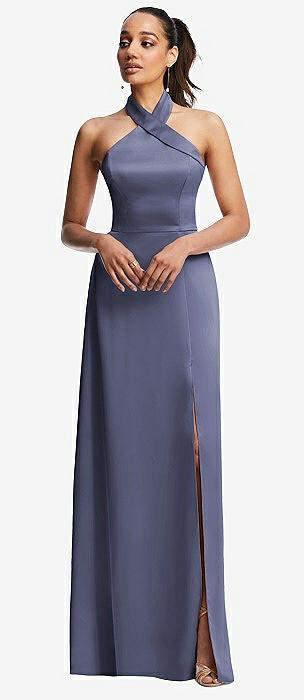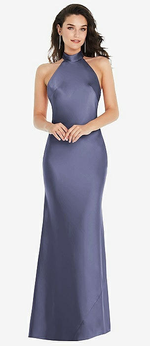 French Blue High Neck Bridesmaid Dresses