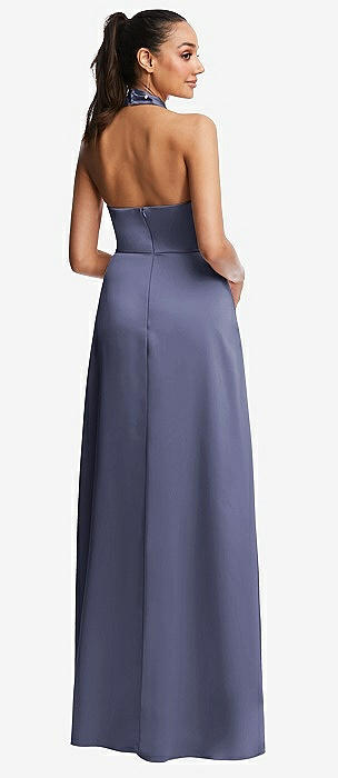 Scarf Tie High-Neck Halter Maxi Slip Dress in french blue