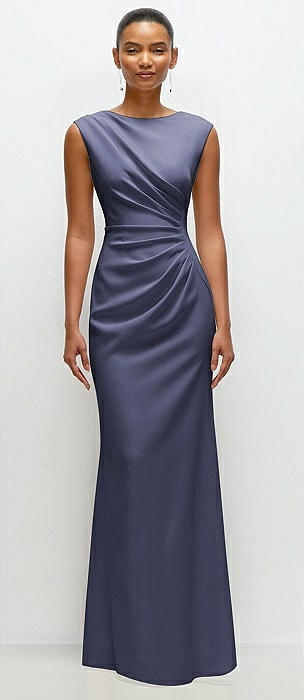Cap Sleeve Open-Back Trumpet Gown with Front Slit in french blue