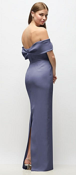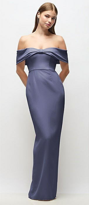 Off-the-Shoulder Crepe Column Maxi Dress with Bow-Pinch Detail in french blue