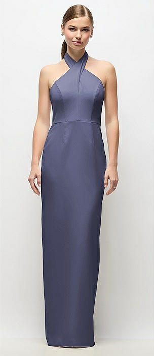 Criss Cross Halter Open-Back Stretch Satin Mermaid Dress in french blue