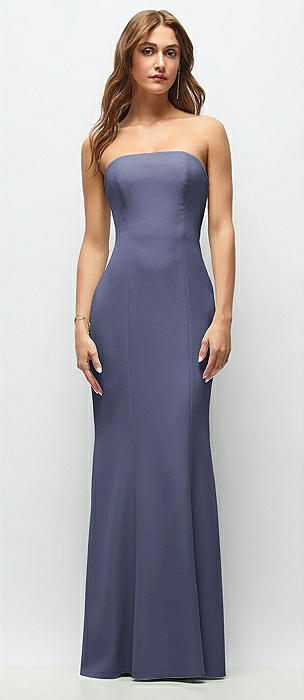 Strapless Fit and Flare Crepe Maxi Dress in french blue