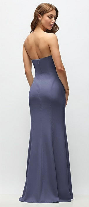 Strapless Scoop Back Maxi Dress with Front Slit in french blue