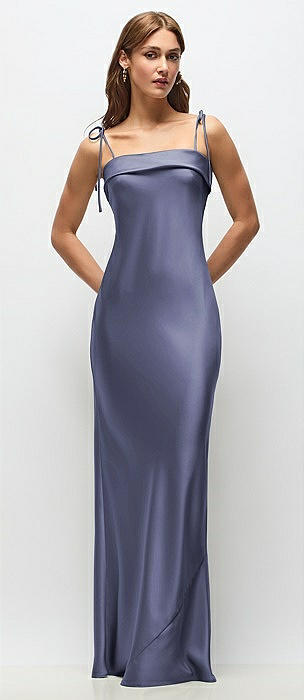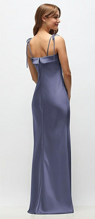 Cuff Neck Satin Bias Maxi Dress with Self-Tie Spaghetti Straps in french blue