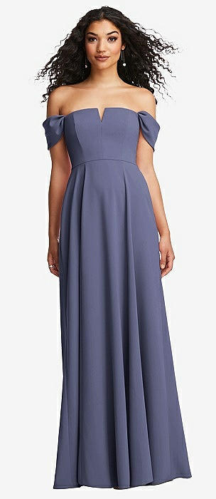 Off-the-Shoulder Pleated Cap Sleeve A-line Maxi Dress in french blue