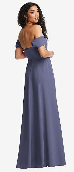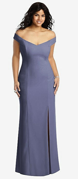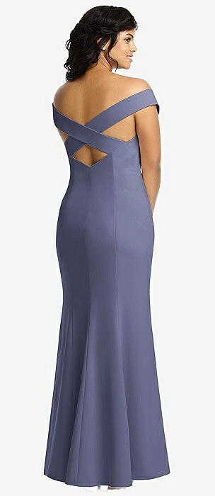 Off-the-Shoulder Criss Cross Back Trumpet Gown in french blue