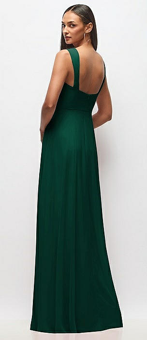 Square Neck Chiffon Maxi Dress with Circle Skirt in hunter green