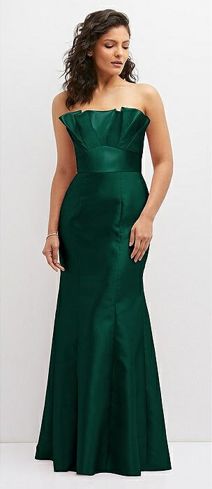 Strapless A-line Satin Gown with Modern Bow Detail in hunter green