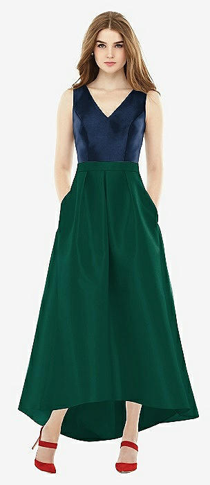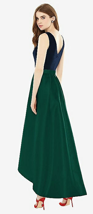 Bateau Neck Satin High Low Cocktail Dress in hunter green