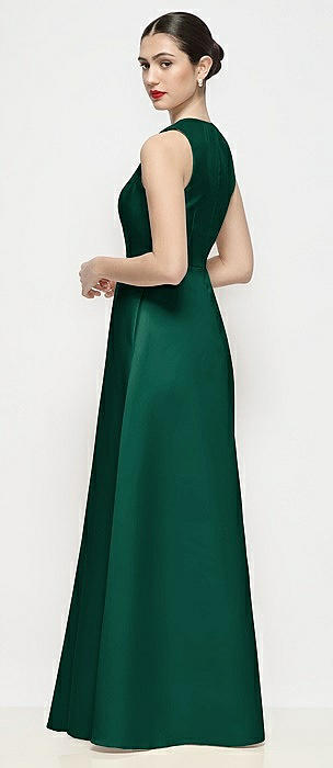 Sleeveless V-neck Satin Maxi Dress with Pleated Skirt