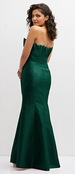 Strapless A-line Satin Gown with Modern Bow Detail in hunter green