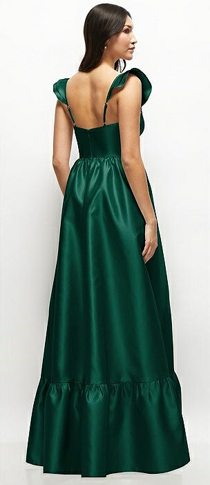 Satin Corset Maxi Dress with Ruffle Straps & Skirt in hunter green