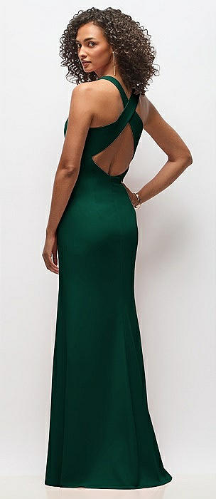 Draped Twist Halter Tie-Back Trumpet Gown in hunter green