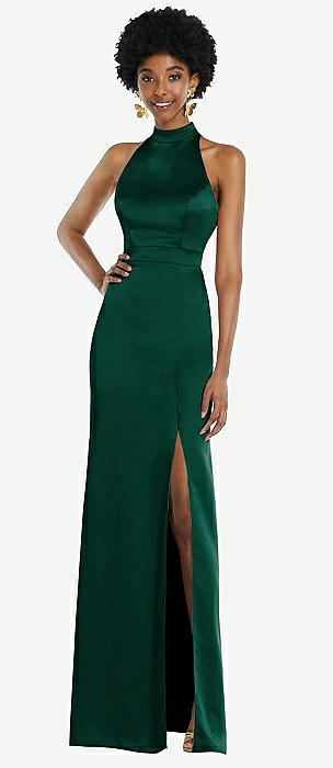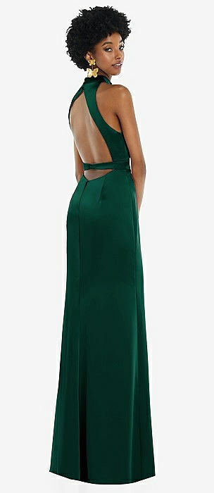 High Neck Backless Maxi Dress with Slim Belt in hunter green