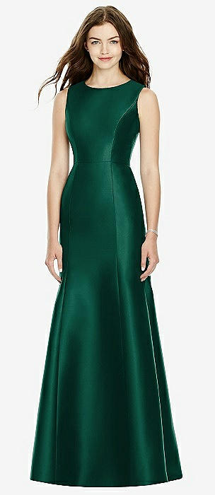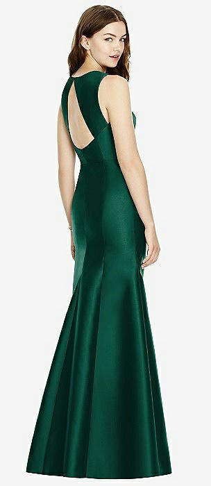 Sleeveless Satin Trumpet Gown with Bow at Open-Back in hunter green