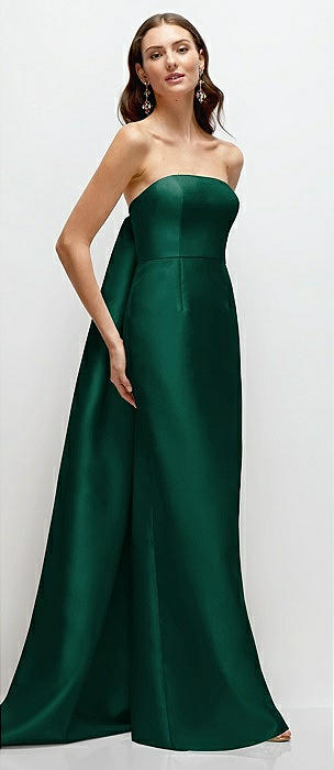 Strapless Satin Column Dress with Removeable Watteau Train in hunter green