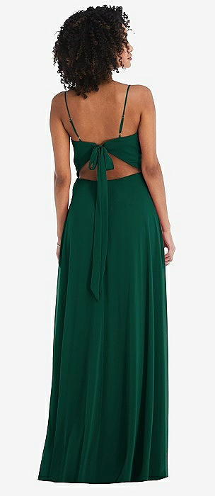 Tie-Back Cutout Maxi Dress with Front Slit in hunter green