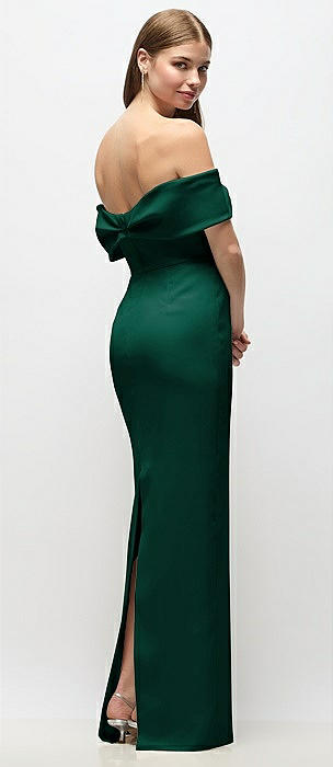 Off-the-Shoulder Crepe Column Maxi Dress with Bow-Pinch Detail in hunter green