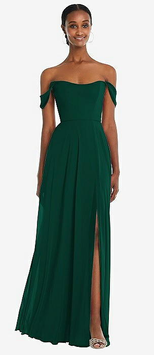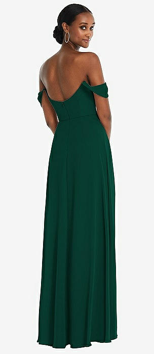 Off-the-Shoulder Basque Neck Maxi Dress with Flounce Sleeves in hunter green