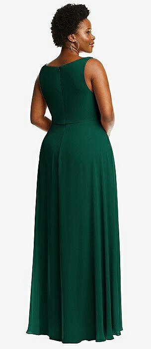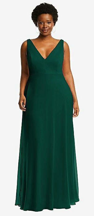 Deep V-Neck Chiffon Maxi Dress in hunter green