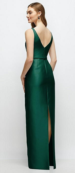 Sleeveless Satin Trumpet Gown with Bow at Open-Back in hunter green