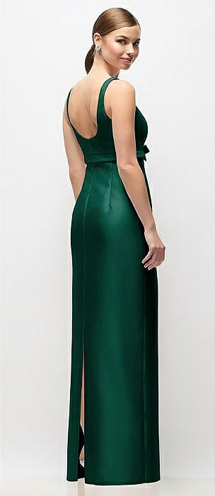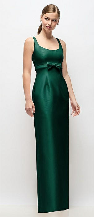 Scoop Neck Satin Column Maxi Dress with Bow at Empire Waist in hunter green