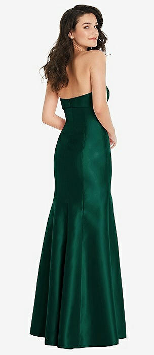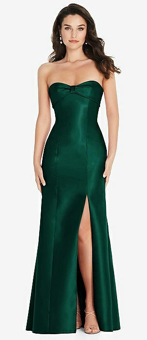 Bow Cuff Strapless Princess Waist Trumpet Gown in hunter green