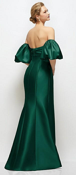 Off-the-Shoulder Puff Sleeve Satin Maxi Dress with Flared Skirt