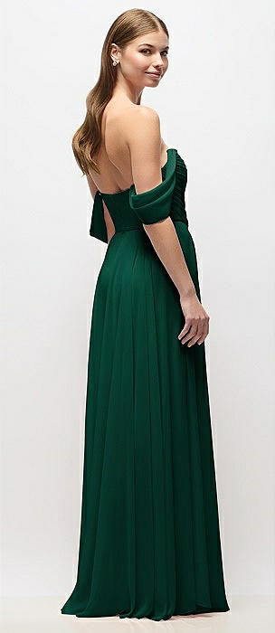 Strapless Chiffon Maxi Dress with Asymmetrical Ruched Drop Waist in hunter green