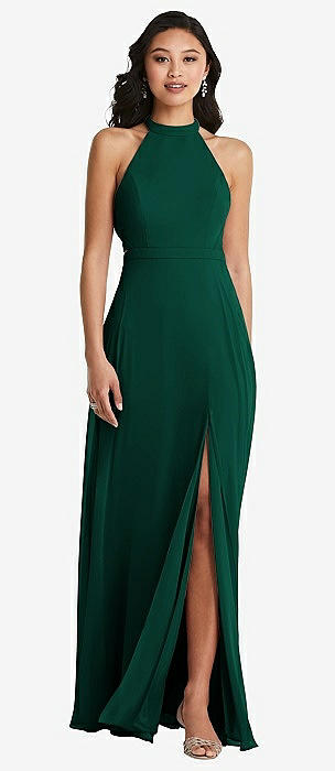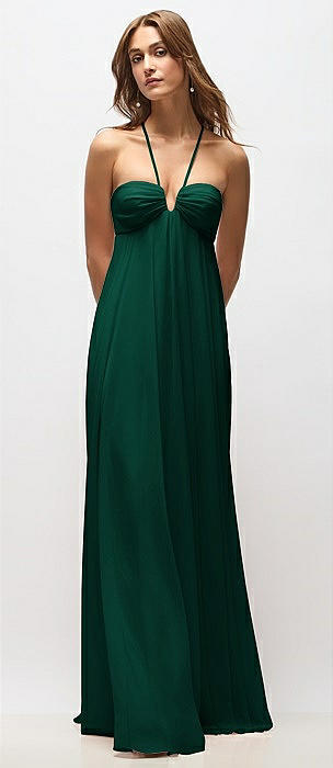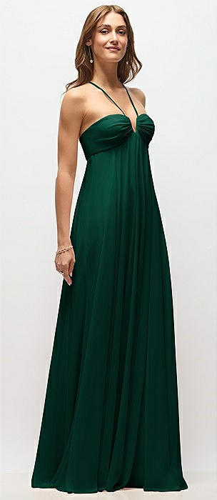 Empire Waist Chiffon Halter Maxi Dress with Convertible Spaghetti Straps in hunter green