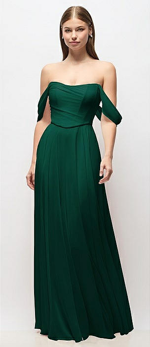 Off-the-Shoulder Basque Corset Chiffon Maxi Dress in hunter green