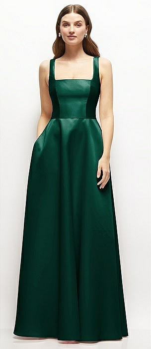 Dessy Hunter Green Square Neckline Bridesmaid Dresses
