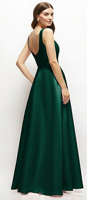 Square-Neck Satin Maxi Dress with Full Skirt in hunter green