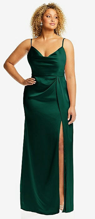Cowl-Neck Draped Wrap Maxi Dress with Front Slit