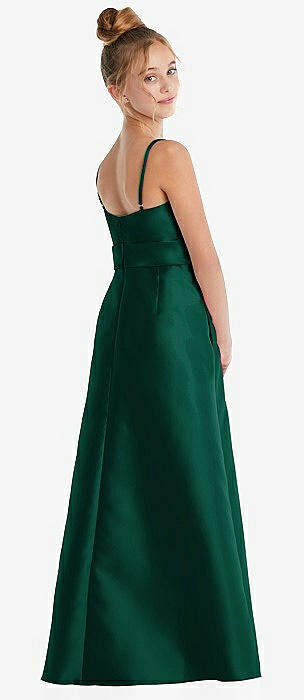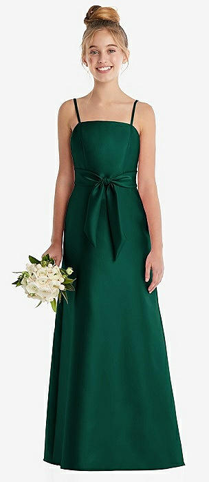 Spaghetti Strap Satin Junior Bridesmaid Dress with Mini Sash in hunter green