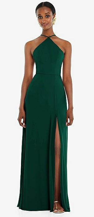 Diamond Halter Maxi Dress with Adjustable Straps in hunter green