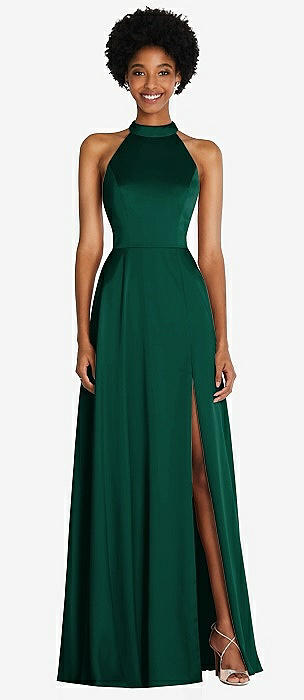 Thread Bridesmaid Hunter Green High Neck Bridesmaid Dresses