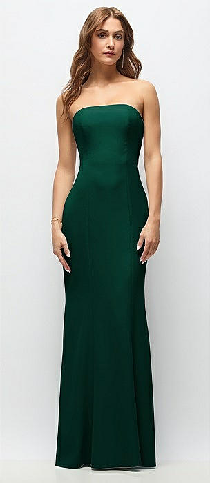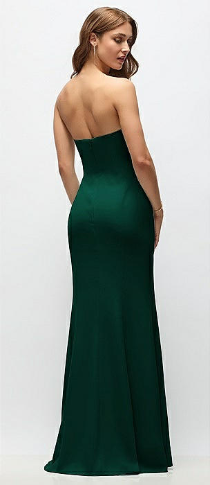 Strapless Fit and Flare Crepe Maxi Dress in hunter green