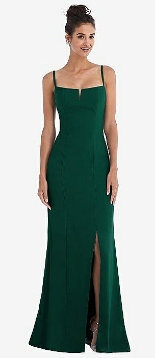 Notch Crepe Trumpet Gown with Front Slit in hunter green