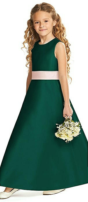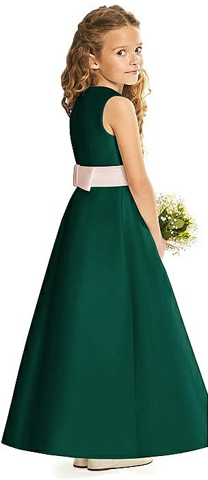 Princess Line Satin Twill Flower Girl Dress with Bows in hunter green
