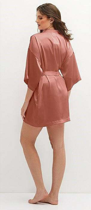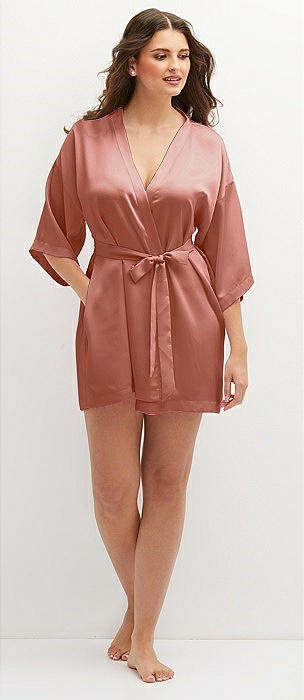 3/4 Sleeve Satin Shirt Dress Gown with Sash and Jeweled Buttons in midnight navy